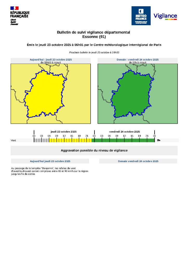 Bulletin de suivi vigilance départemental Essonne (91) – tempête benjamin jeudi 23/10/2025