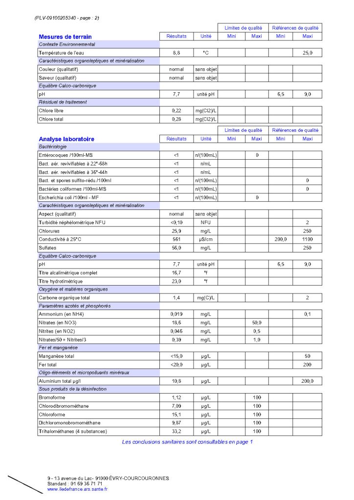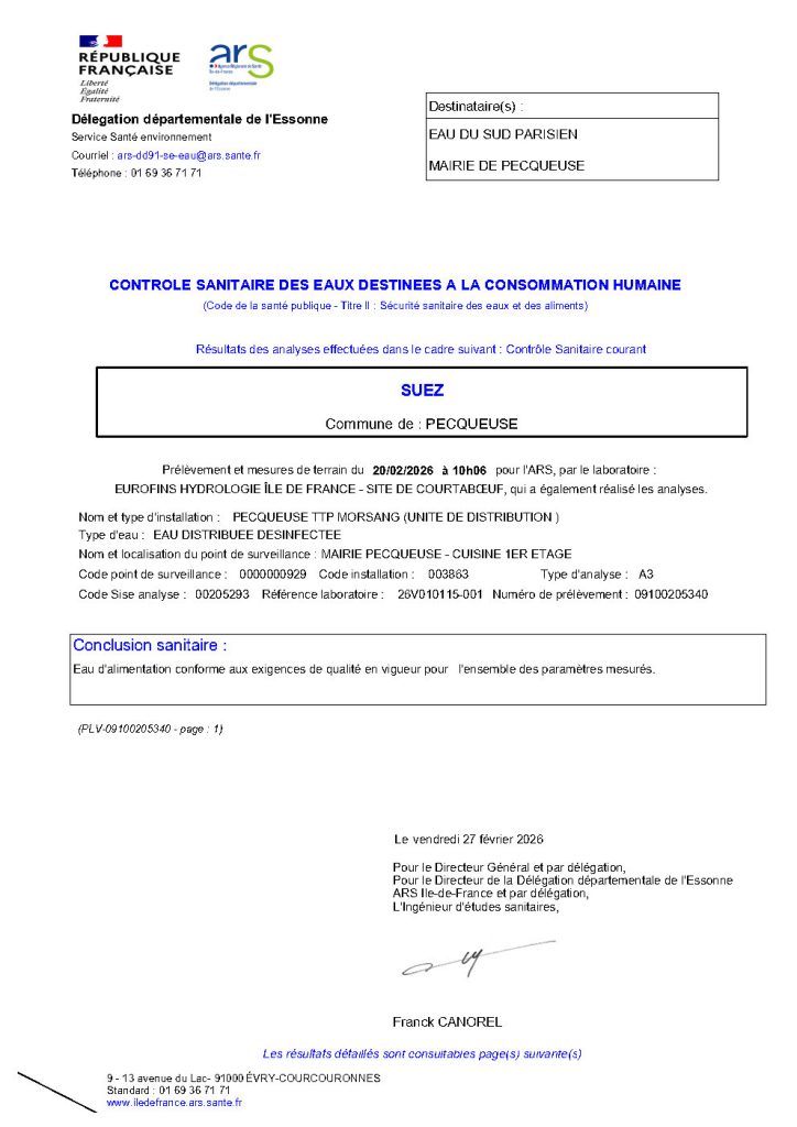 Bulletin relatif aux derniers résultats d’analyses du contrôle sanitaire réglementaire – février 2026