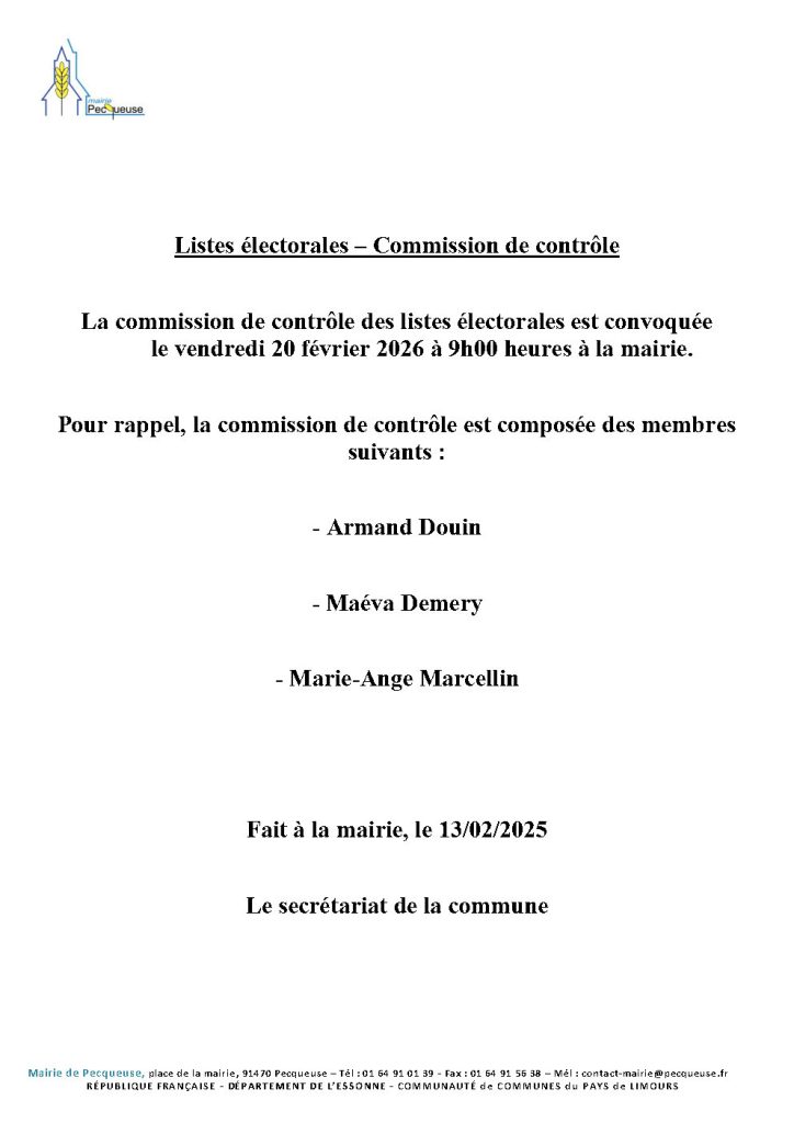 convocation commission de contrôle des listes electorales – vendredi 20 février 2026 à 9h00