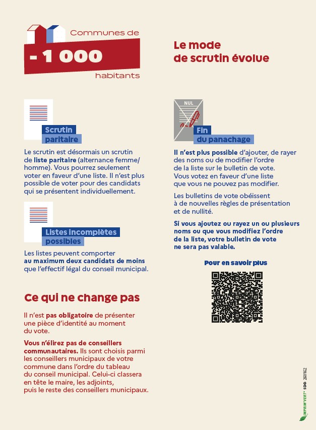 Les dimanches 15 et 22 mars 2026, un nouveau mode de scrutin s’appliquera dans les communes de moins de 1 000 habitants.