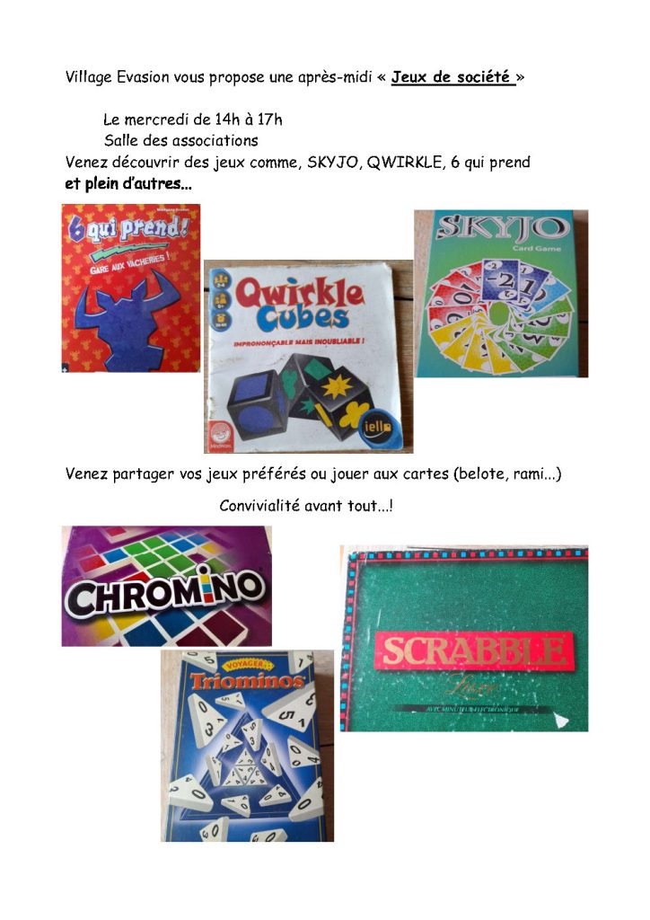 Village évasion après-midi « Jeux de société » tous les mercredis de 14h à 17h